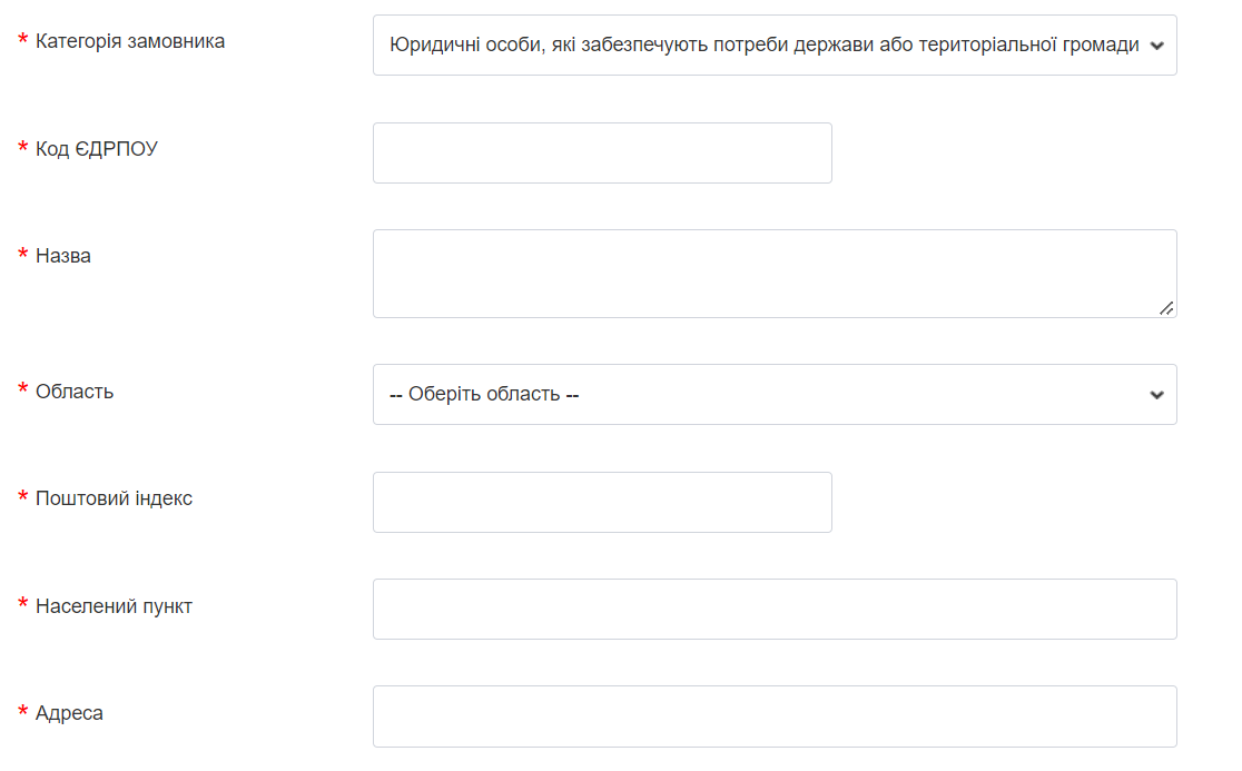 Тут у замовника є можливість зазначити окремо назву, код за ДК 021:2015 та інші дані щодо кожної позиції. Також можна додавати та видаляти позиції.