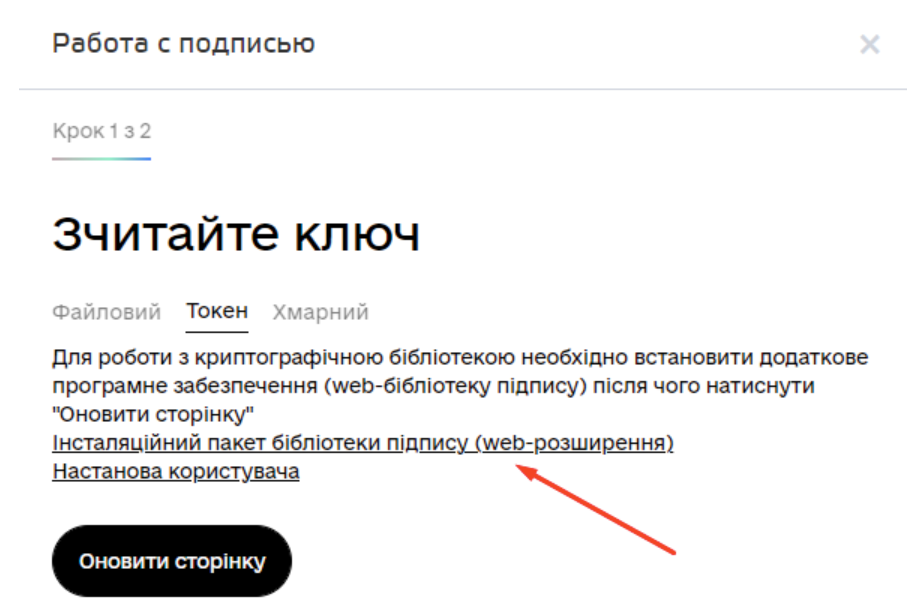Якщо під час підписання у вас з’являється кнопка “Оновити сторінку” – це означає, що потрібно встановити або оновити пакет бібліотек.