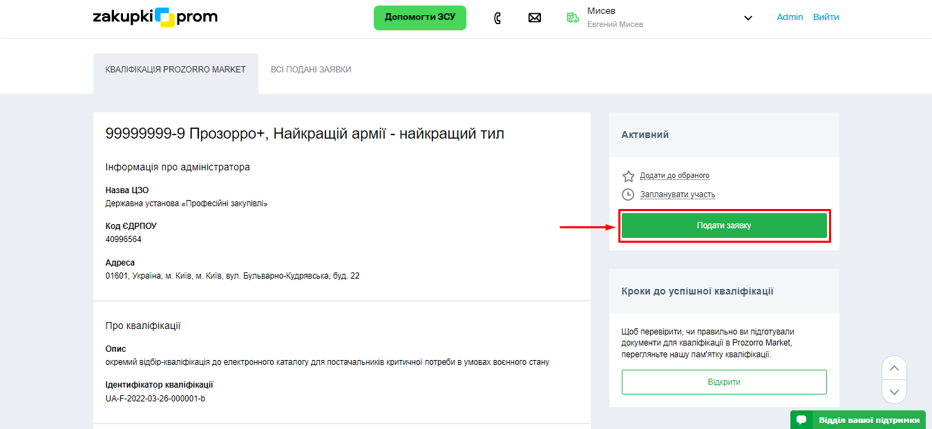 1. Перейдіть на сторінку кваліфікації в Prozorro+ за цим посиланням.