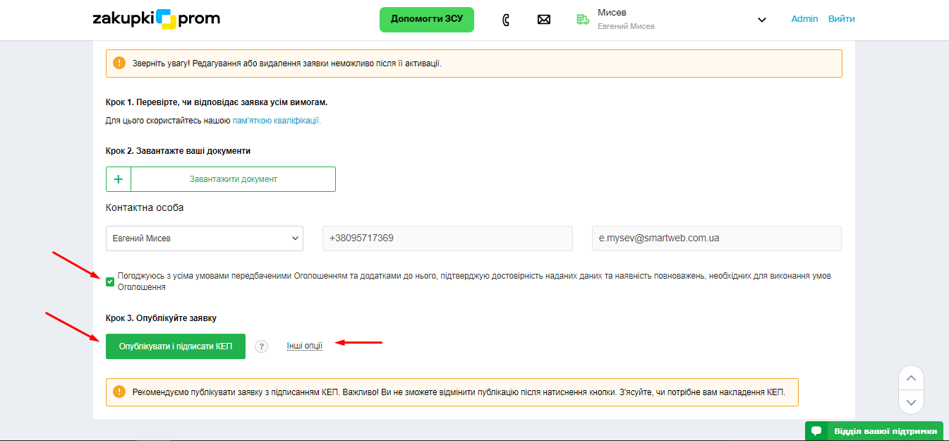 3. Поставте відмітку про погодження та натисніть “Опублікувати і підписати КЕП”. Також ви можете натиснути “Інші опції” та опублікувати без КЕП.