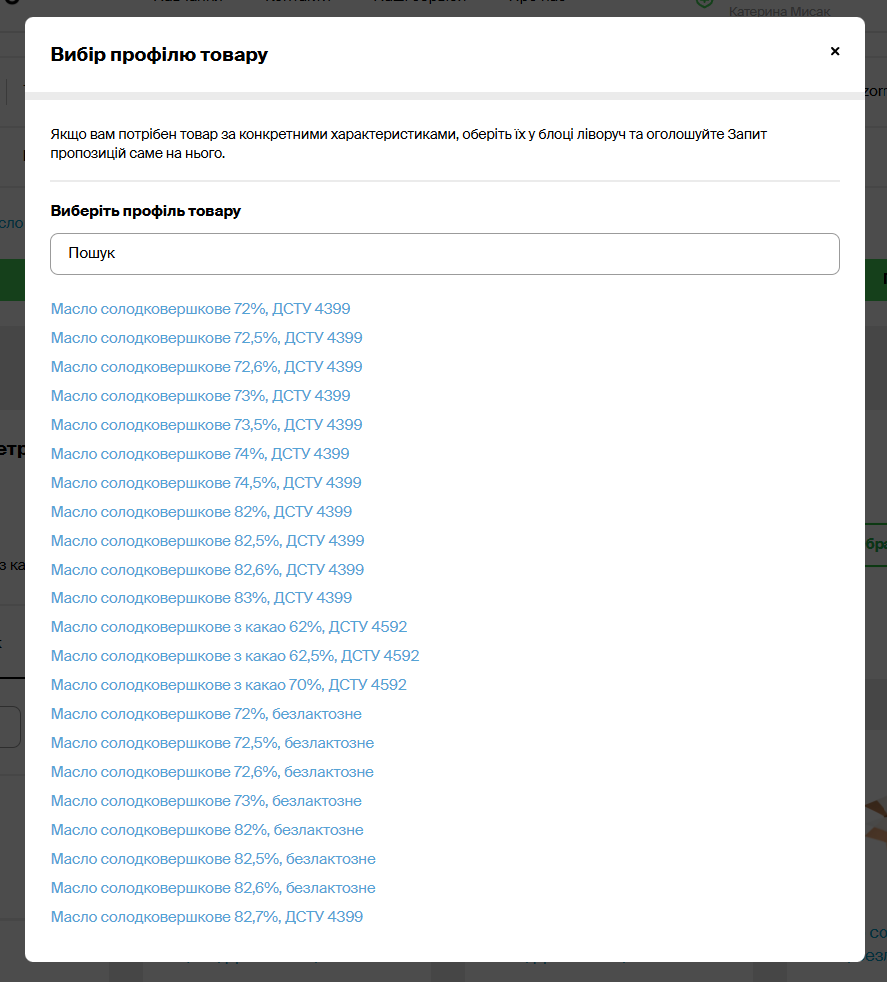 Під час проходження кваліфікації, наприклад, у категорію «Вершкове масло», учасник поданням своєї заявки про приєднання до каталогу погоджується з усіма умовами роботи в каталозі та підтверджує відповідність товару показникам та вимогам якості, безпечності, екологічності, упаковки, маркування, транспортування, приймання, зберігання та іншим показникам і вимогам, які встановлюються законодавством України, діючими стандартами, технічними та іншими умовами до цього виду товару, зокрема, але не виключно щодо його споживчих властивостей.