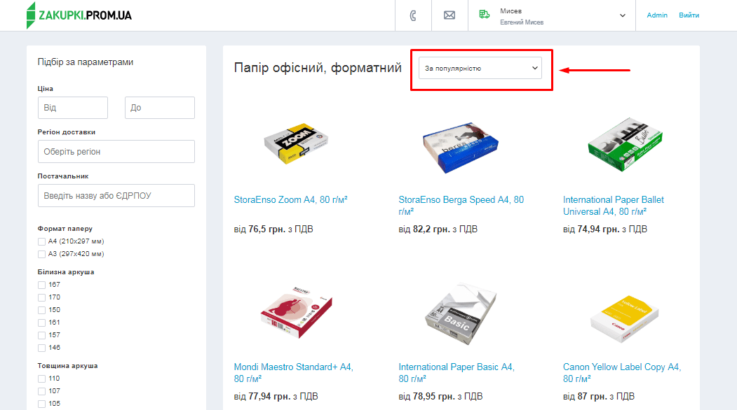 • якщо вам необхідно замовити товар, який не треба вивчати за технічними характеристиками (наприклад, папір), оберіть сортування за популярністю.