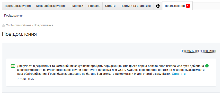 Відтепер всі важливі повідомлення будуть виводитись та зберігатись виключно в одному місці. На сторінку будуть потрапляти оновлення функціоналу, відповіді на запитання та вимоги, зміни в закупівлях, в які було подано пропозицію.