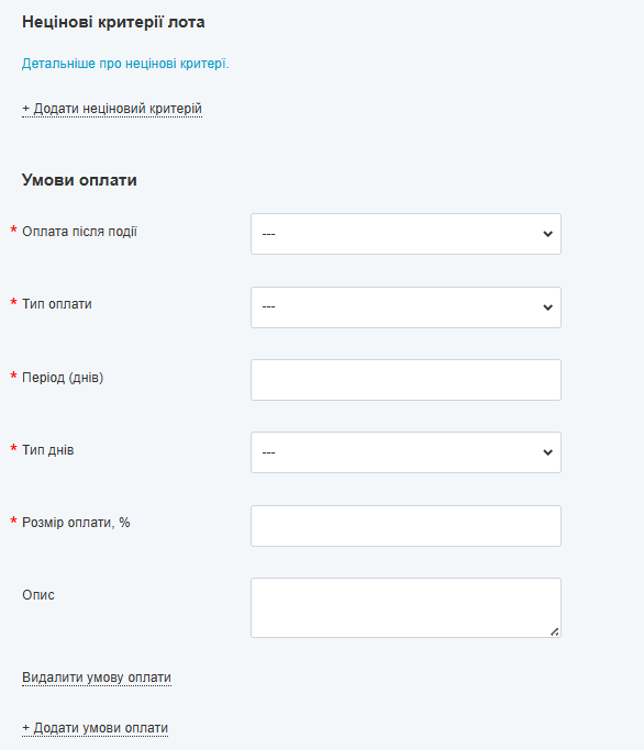 Якщо в закупівлі передбачені нецінові критерії, заповніть відповідні поля.