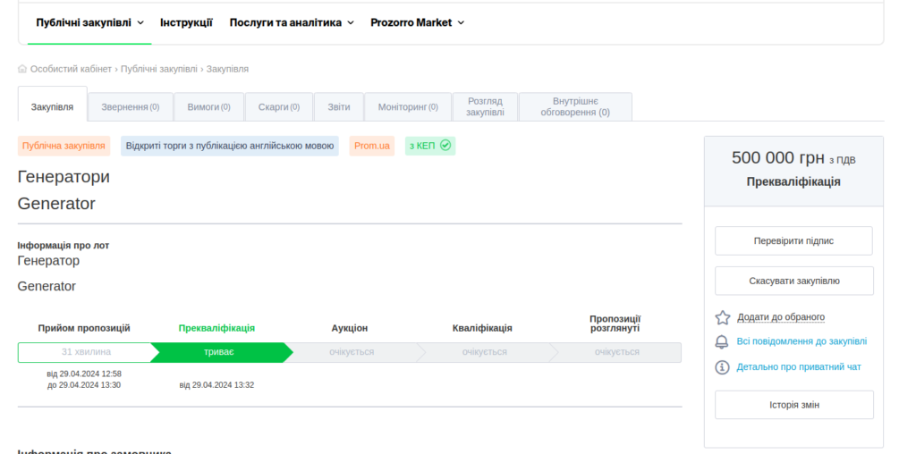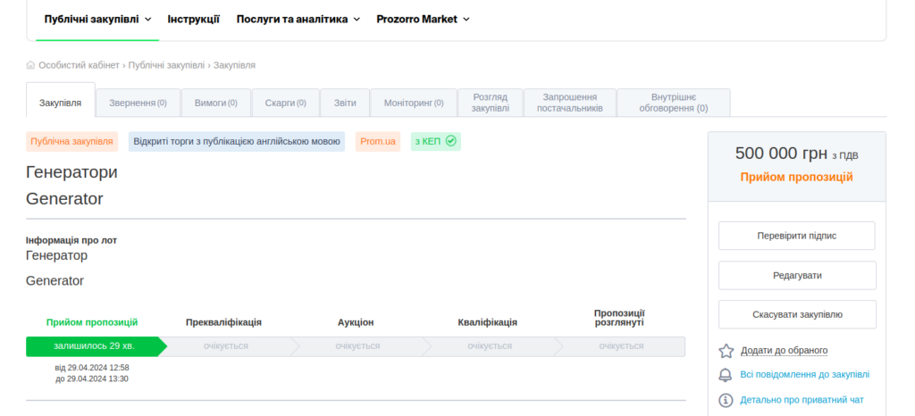 До останнього дня включно учасники можуть подавати пропозиції, які складаються з двох частин: технічної і цінової.