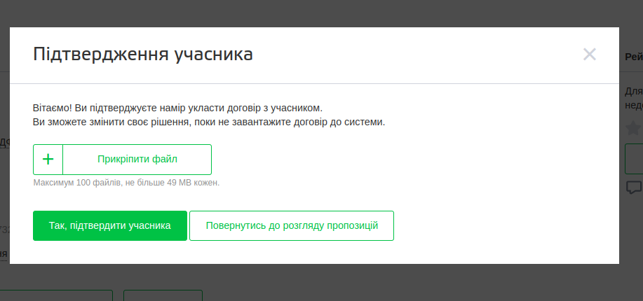 У разі визначення учасника переможцем скористайтеся кнопкою “Підтвердити” та завантажте рішення УО.