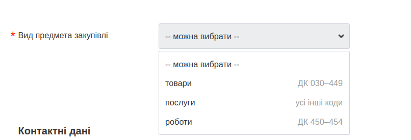 У разі, якщо закупівля здійснюється  за кошти Ukraine Facility, поставте відмітку “Закупівля за кошти донора” і виберіть зі списку Ukraine Facility.