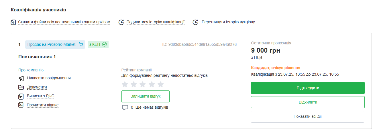 19. Розгляньте пропозицію кожного учасника. За потреби надайте 24 години на усунення невідповідностей.