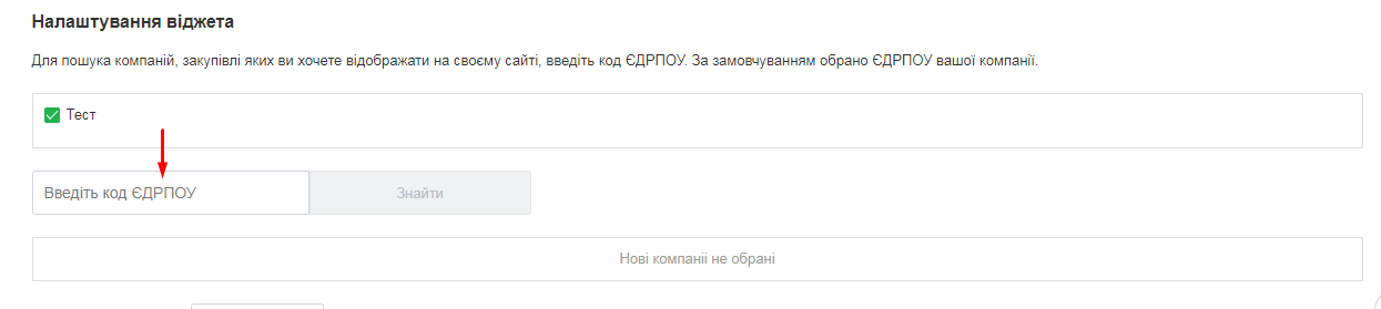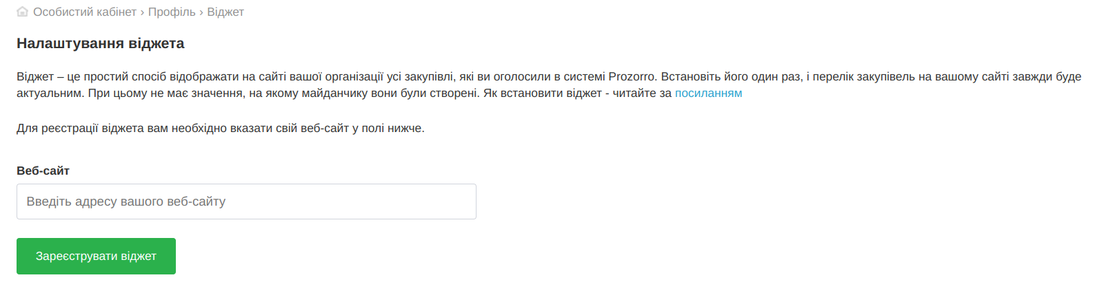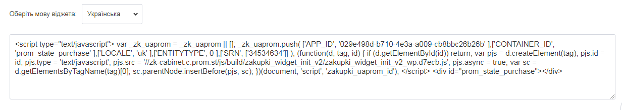 Віджет буде автоматично створено для закупівель організації, в обліковому записі якої ви проводите налаштування.