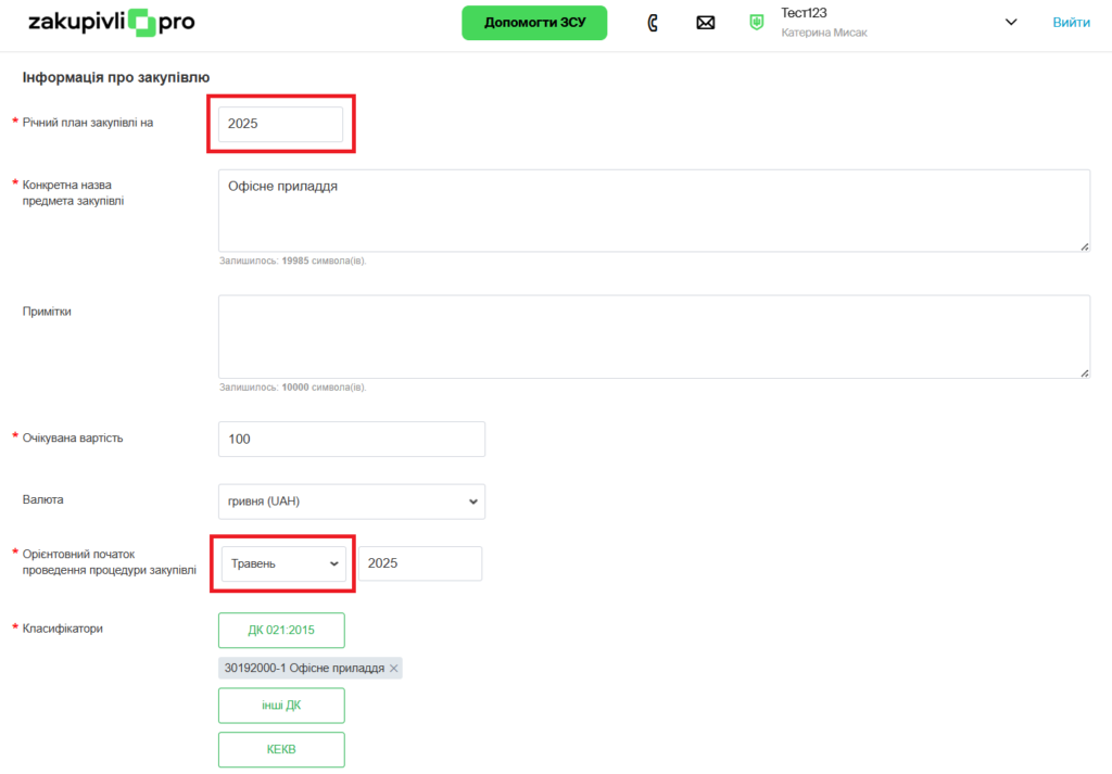 Якщо ви затвердили річний план, відповідно до законодавства у вас є 5 робочих днів на його оприлюднення. А отже, в електронній системі необхідно вказати орієнтований початок проведення закупівлі, до прикладу: травень. Важливо провести закупівлю саме протягом травня, але при цьому не має значення 1 травня чи 20 – все залежить від розпорядчих рішень у межах підприємства.