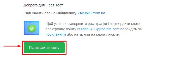 Відкрийте лист із темою “Підтвердження реєстрації на Zakupivli.Pro” та перейдіть за посиланням у ньому. Якщо раптом ви не бачите листа – перевірте папки “Промоакції”, “Спам” тощо.