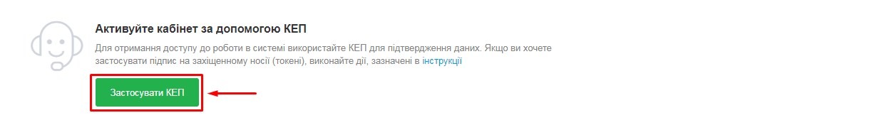 8. Активуйте особистий кабінет за допомогою КЕП. Для цього натисніть спочатку “Застосувати КЕП”.