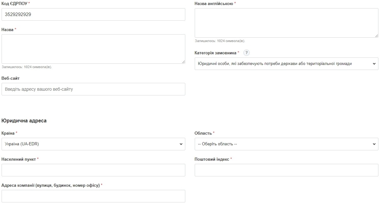 Якщо головною організацією обов’язки з проведення закупівель покладено на відокремлений підрозділ, тоді при реєстрації вказуєте інформацію саме по відокремленому підрозділу в тому вигляді, як вона прописана в ЄДР.