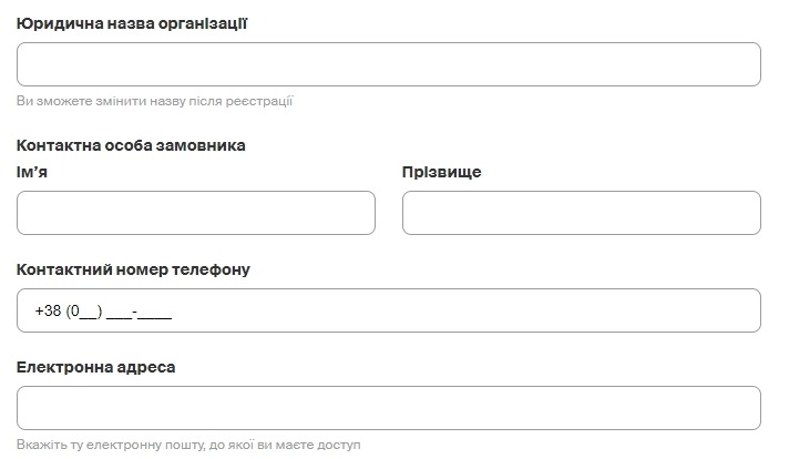 3. Вкажіть назву вашої організації, ім’я, прізвище, контактний номер телефону та електронну пошту.