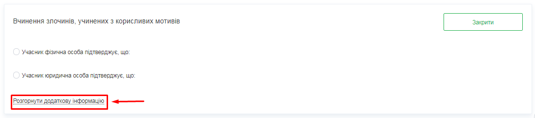 Також у кожному критерії є посилання “Розгорнути додаткову інформацію”, яке містить посилання на закон.