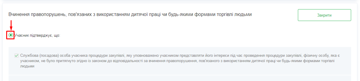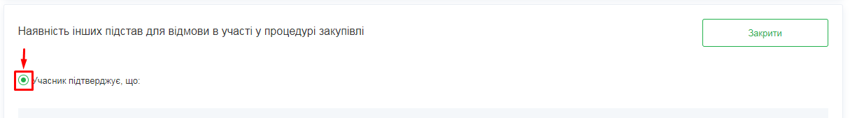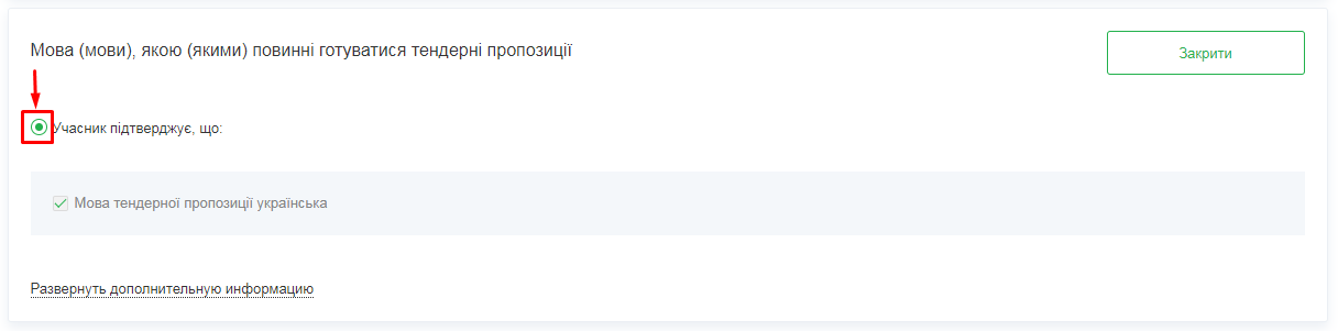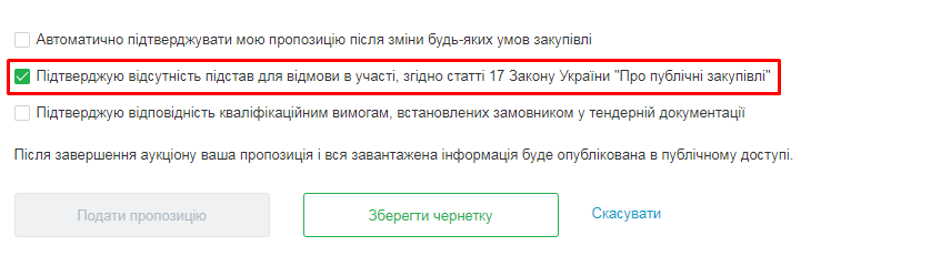 Відмітка у цьому полі буде стояти автоматично. Вам необхідно підтвердити інформацію, якщо державний замовник вказав спосіб підтвердження.
