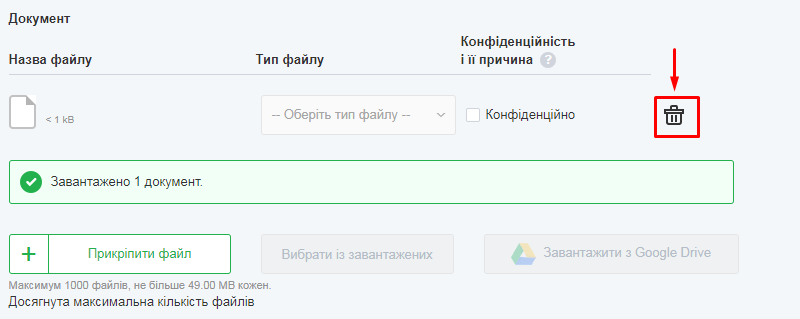 Якщо ви помилково завантажили не той файл, натисніть на відповідну позначку, щоб видалити його.