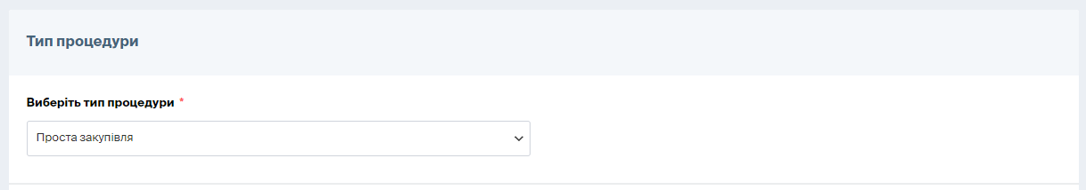 За замовчуванням зазначена Проста закупівля, тому тут нічого змінювати не потрібно.