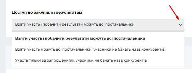 2. Виберіть один із трьох можливих рівнів доступу до закупівлі та результатів.