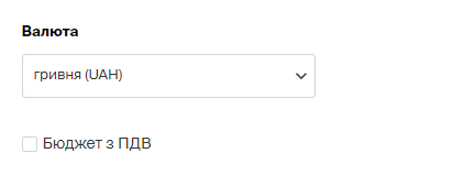 7. Вкажіть валюту та поставте відміткуу разі, якщо бюджет закупівлі з ПДВ.