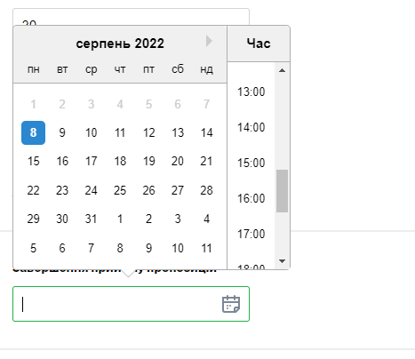 10. Вкажіть дату завершення прийому пропозицій. Вона повинна складати не менш як 2 робочих дні. Система рахує один робочий день як добу – 24 години.