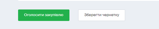 14. Після заповнення всіх полів, натисніть “Оголосити закупівлю”. Якщо ви ще не готові оголошувати закупівлю, збережіть чернетку, щоб повернутися до неї пізніше.