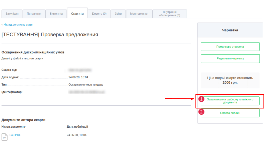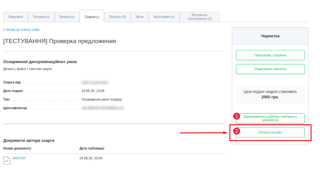 4. Оплатіть скаргу через розрахунковий рахунок.