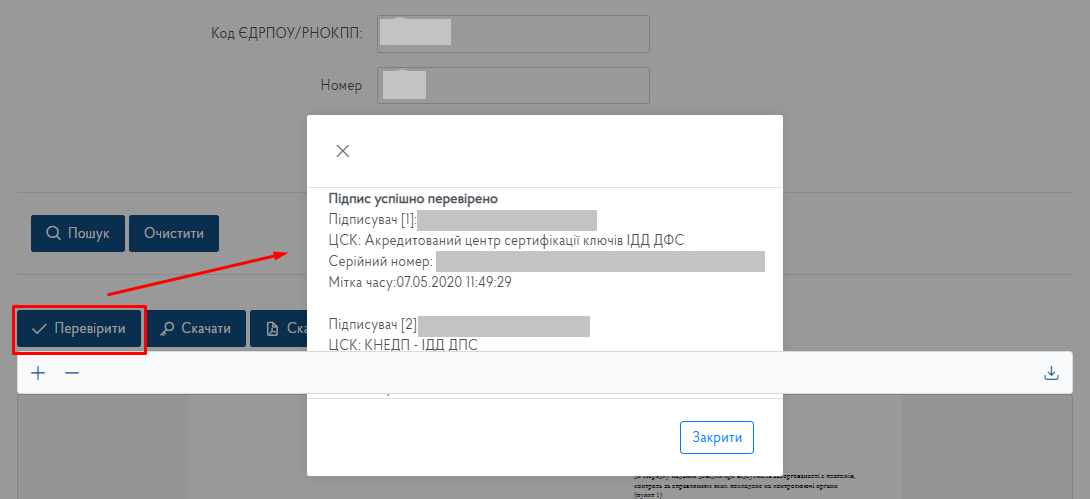 Натиснувши на кнопку “Перевірити”, користувач побачить, хто саме з представників ДФС підписував довідку.