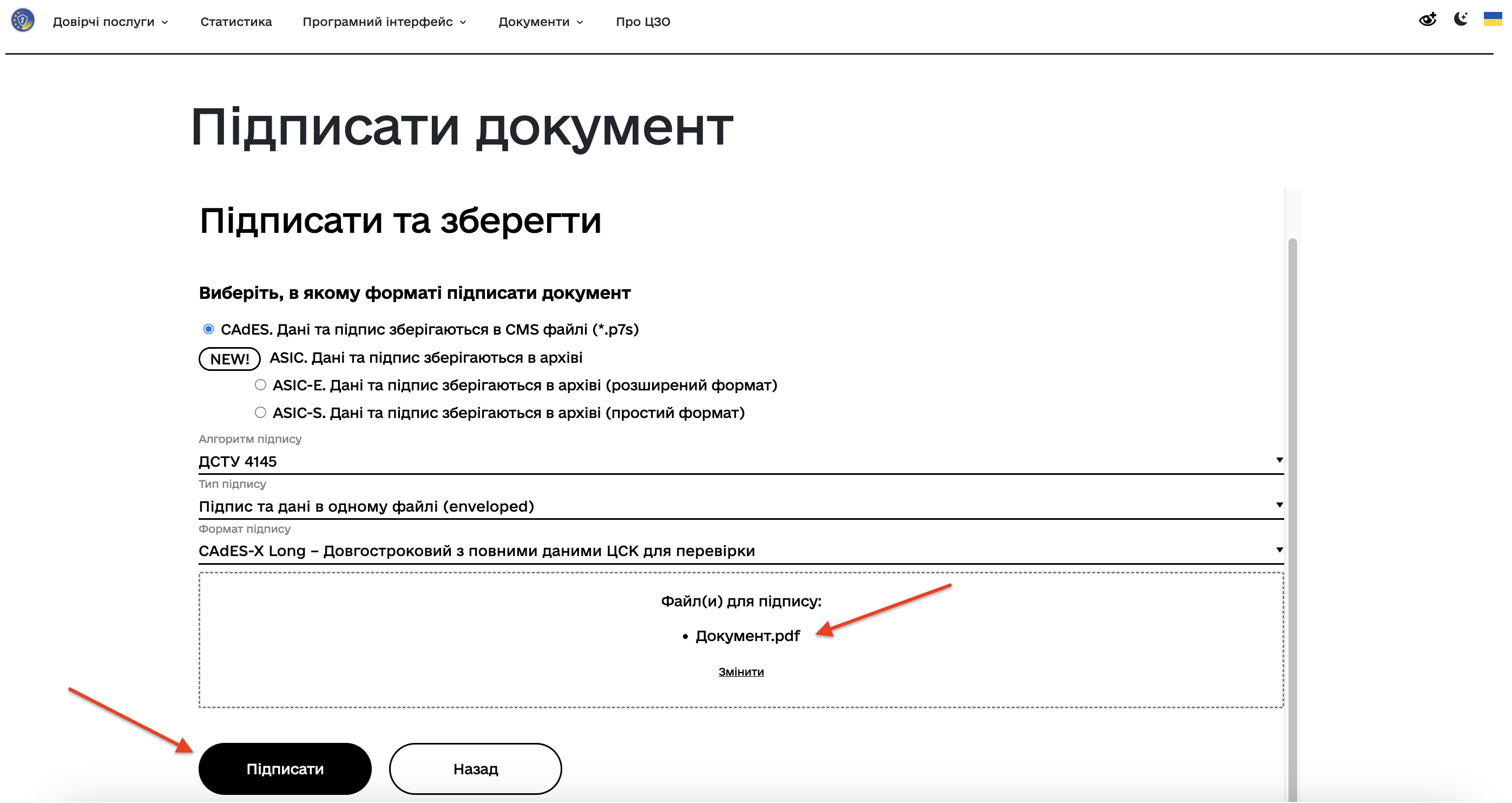 6. Завантажте файл, який вам треба підписати, та натисніть “Підписати”.