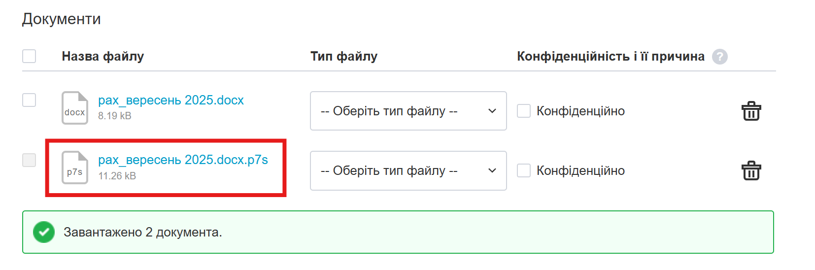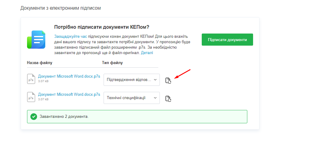 Якщо вам потрібно додати новий файл, натисніть “Прикріпити файли з автоматичним підписанням”.