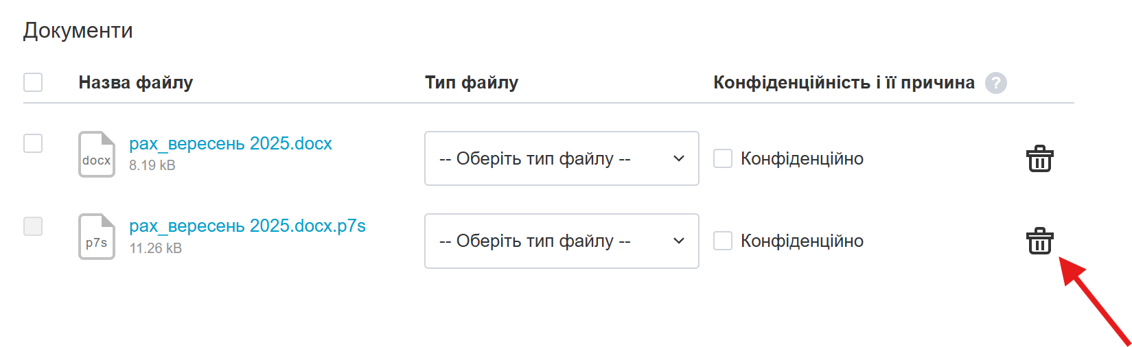Якщо ви помилково вибрали не той документ, натисніть на позначку, щоб видалити його.