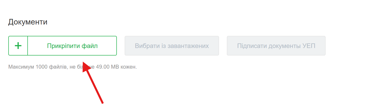 1. Завантажте всі необхідні документи в розділ «Документи», натиснувши «Прикріпити файл».