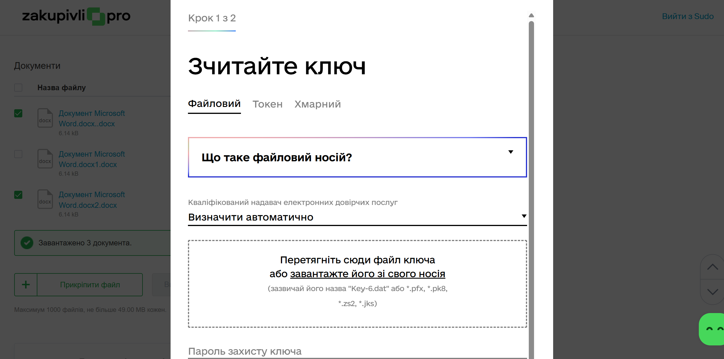 7. За замовчуванням обрано файловий ключ. Проте ви можете обрати токен або хмарний ключ.
