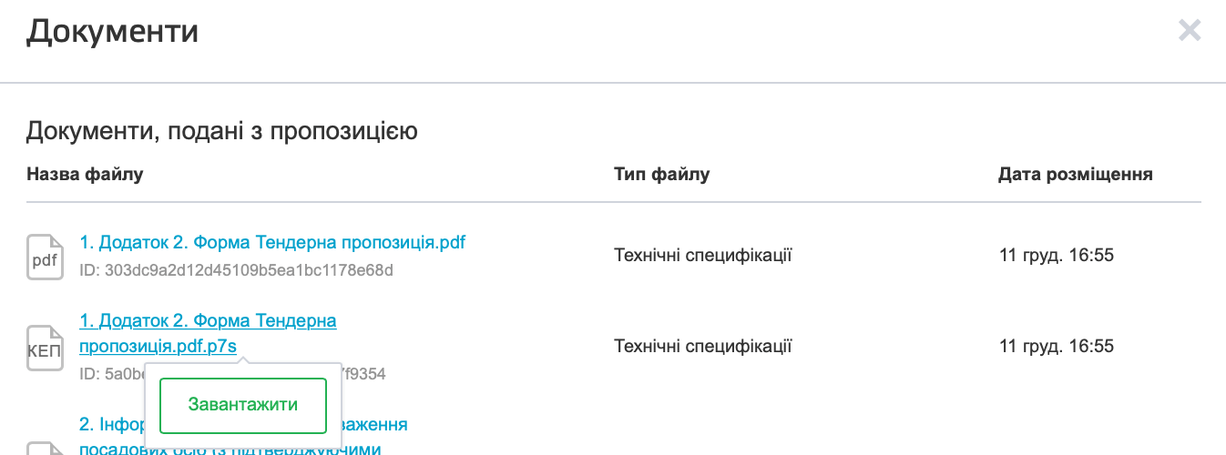 Зверніть увагу, що наявність файлу з розширенням .p7s не є підставою для відхилення пропозиції.