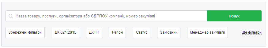 Щоб знайти усі закупівлі, призначені вам або іншому співробітнику компанії, скористайтеся новим фільтром пошуку Менеджер закупівлі.