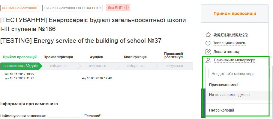 Як призначити закупівлю співробітнику – функція "Призначити менеджеру" у кабінеті постачальника