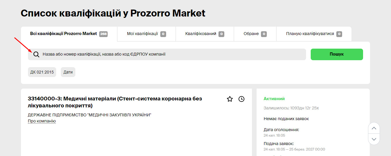 Щоб швидше знайти потрібні закупівлі, скористайтеся рядком пошуку або фільтром ДК 021:2015.