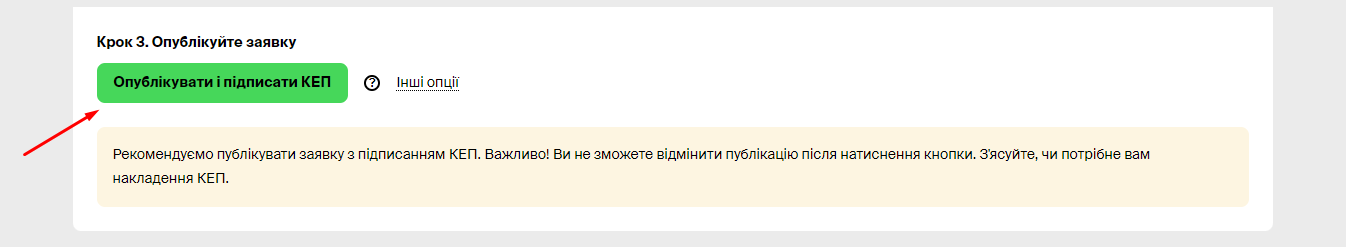 Крок 7 – Далі натисніть “Опублікувати і підписати КЕП”