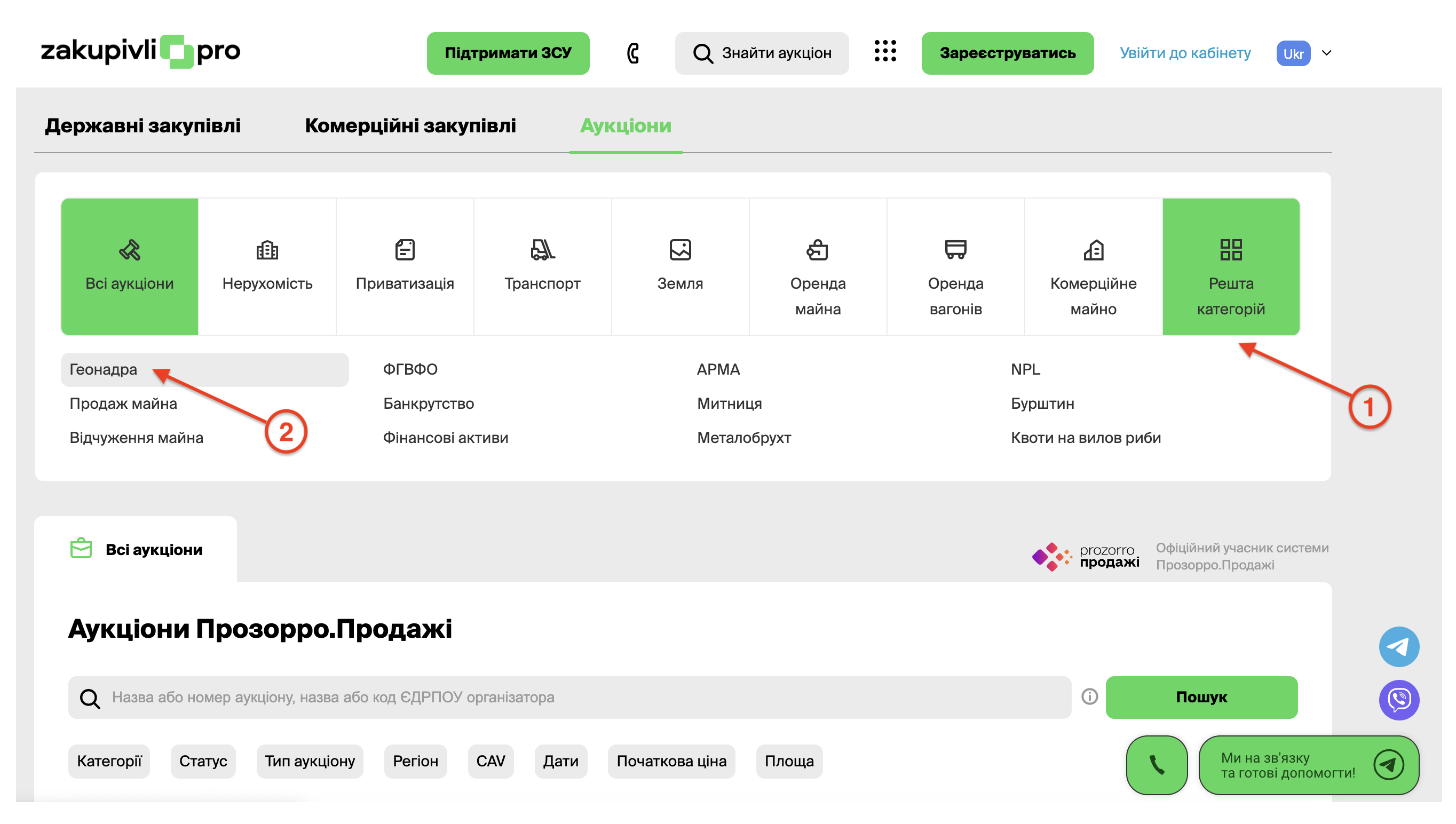 Далі натисніть “Решта категорій” та оберіть “Геонадра”.