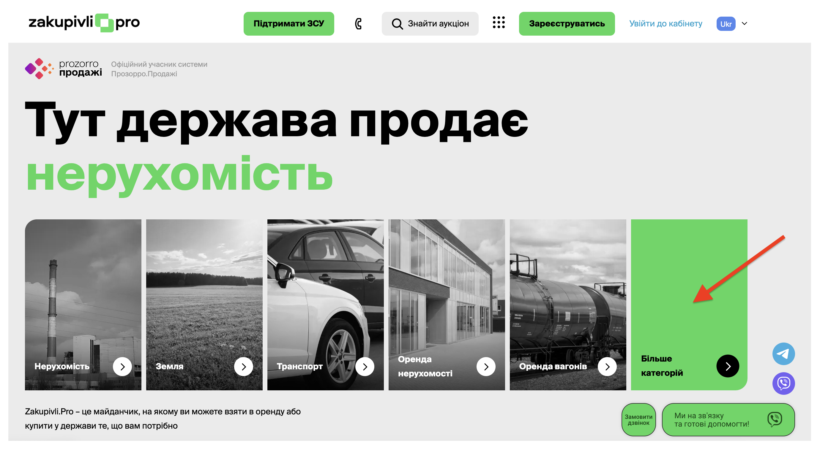 Щоб знайти аукціони з продажу спеціальних дозволів на користування надрами від Державної служби геології та надр України завітайте до майданчика Zakupivli.Pro та натисніть на розділ “Більше категорій”.