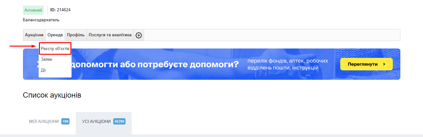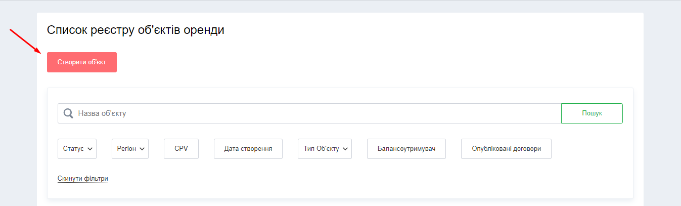 1. Перейдіть у розділ Оренда – Реєстр об’єктів.