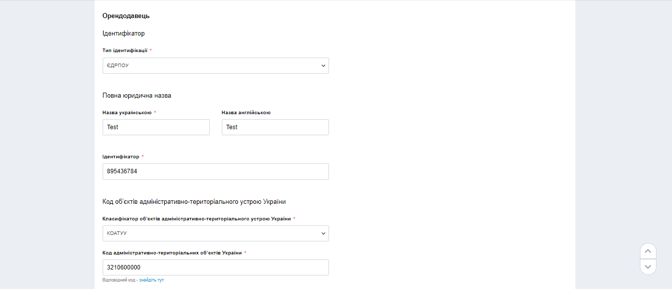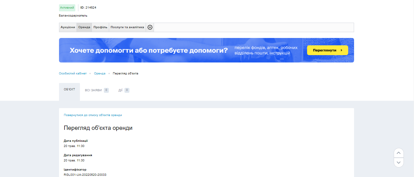 Якщо ви збираєтеся оголосити аукціон на продовження діючого договору оренди, то слід також заповнити дані про чинного орендаря.