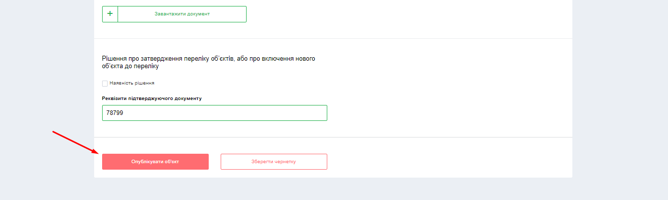4. Після того, які ви заповнили усі поля, натисніть кнопку Опублікувати об’єкт.