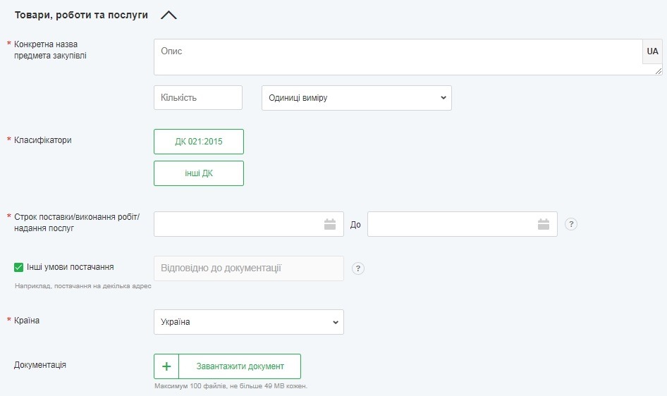 Заповніть блок «Електронна тендерна документація». Читайте більше детально, як це зробити в інструкції за посиланням.