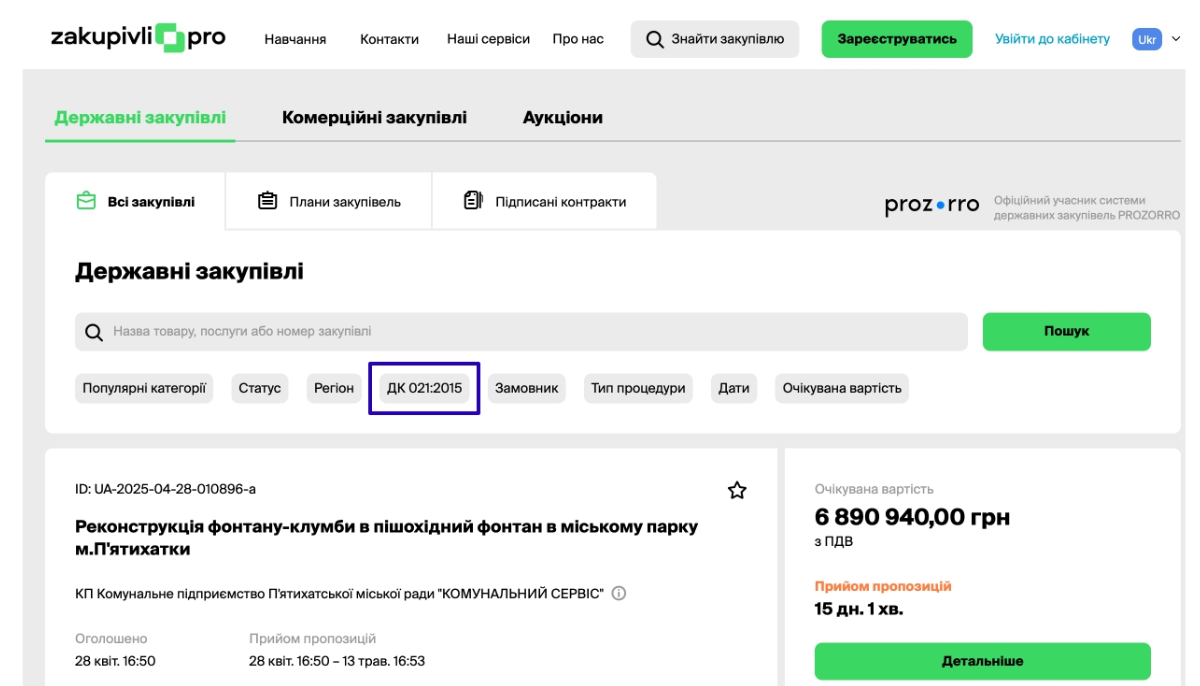 Як знайти замовника за кодом ДК 021:2015?