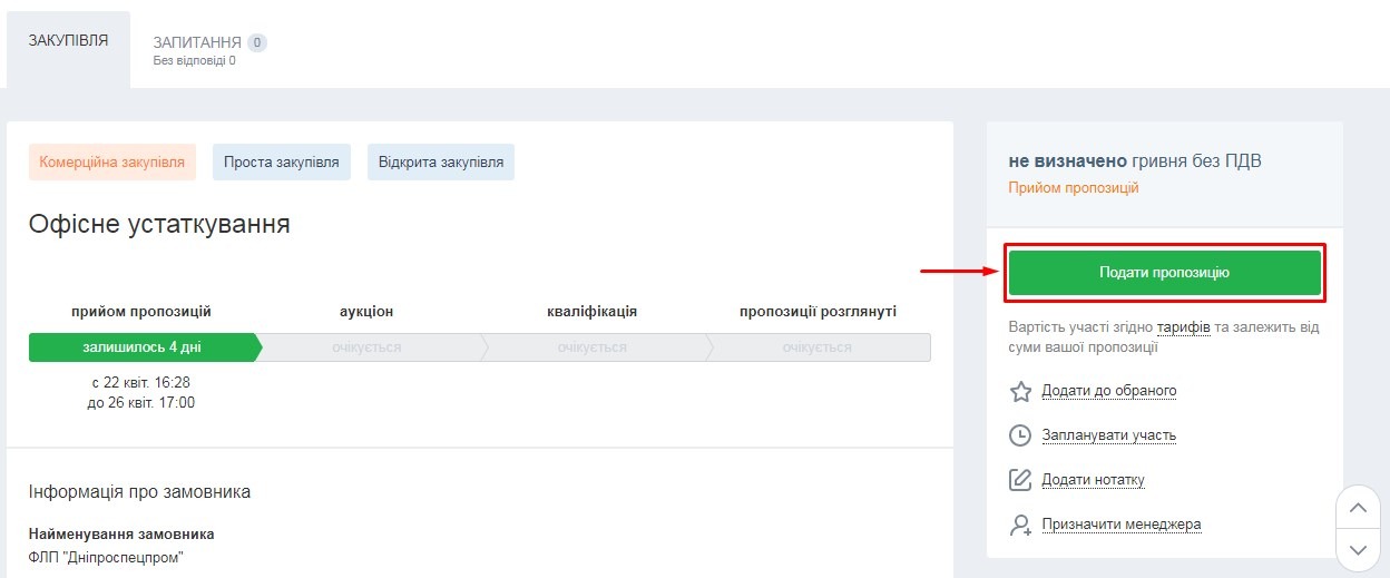 - Спочатку на сторінці закупівлі уважно прочитайте вимоги замовника. Вони можуть міститися як в описі закупівлі, так і в прикріплених файлах.