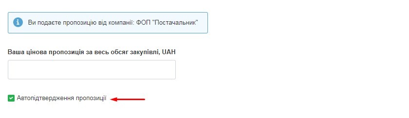 Для чого це потрібно? Якщо замовник внесе зміни у закупівлю, то ваша пропозиція автоматично буде підтверджена. Якщо відмітку зняти, то відповідно у разі змін ваша пропозиція стане неактивною.