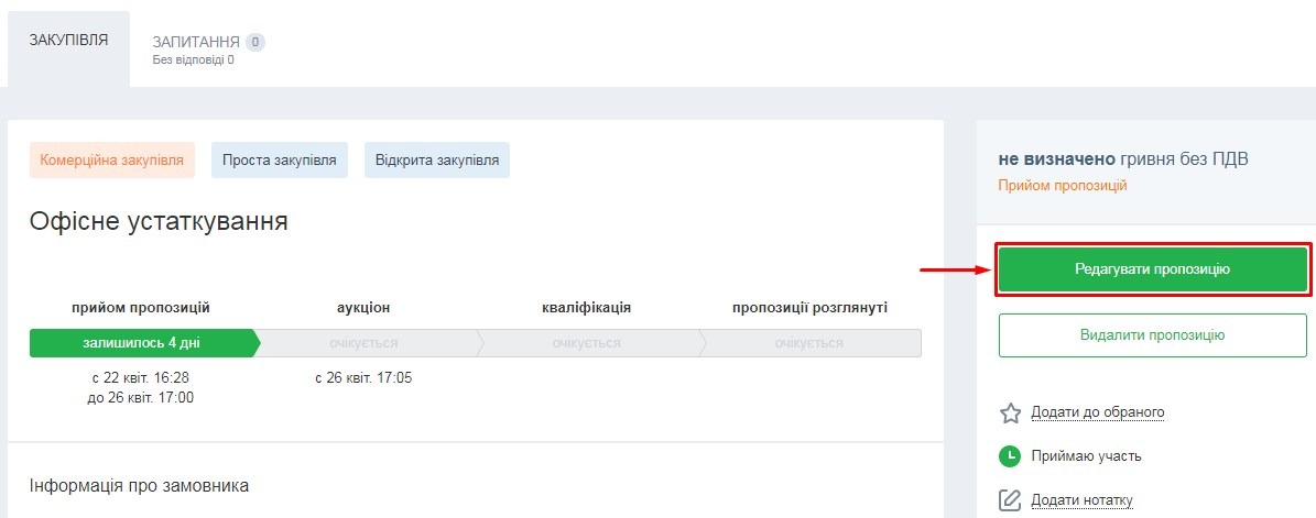 У разі необхідності ви можете відредагувати або видалити пропозицію. Зверніть увагу, що це можна зробити тільки на етапі прийому пропозицій.