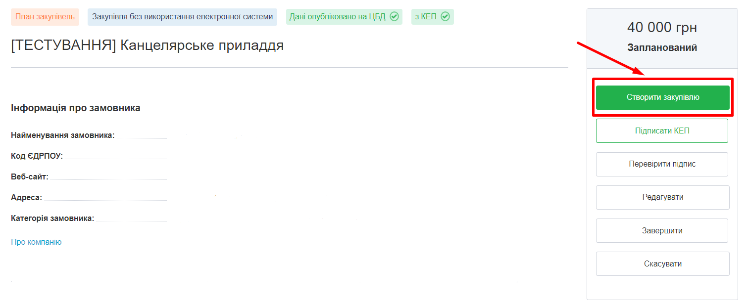• другу закупівлю з цього плану оголошувати немає можливості.