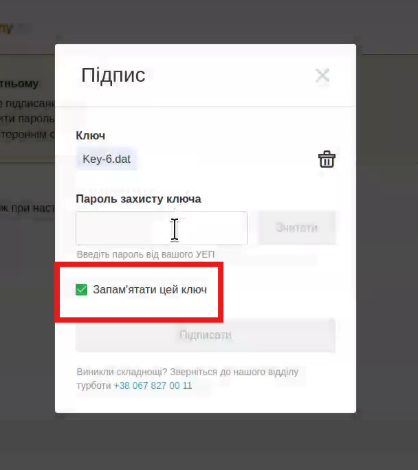 Запам’ятовування удосконаленого електронного підпису (УЕП)